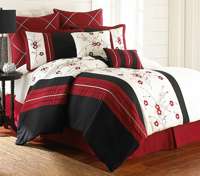 Set includes - One Oversized-Overfilled Comforter, Two Embellished Shams, One Tailored Bedskirt, Three Decorative Embellished Pillows (filled)